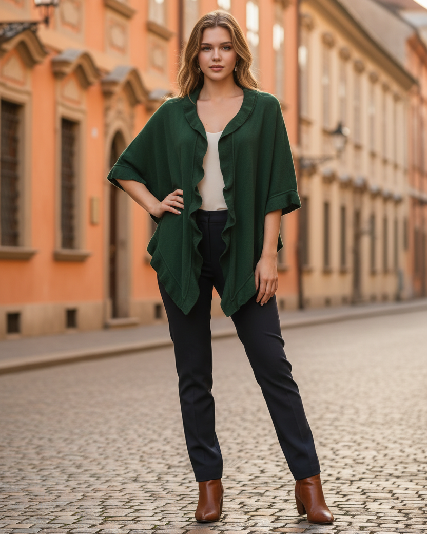Trendiger Poncho mit Rüschenbordüre